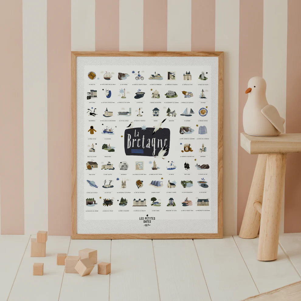 đșïž De la pointe du Raz au kouign-amann, en passant par les alignements de Carnac ou le festival interceltique, cette affiche ludique et esthĂ©tique vous accompagne dans votre exploration de la Bretagne.