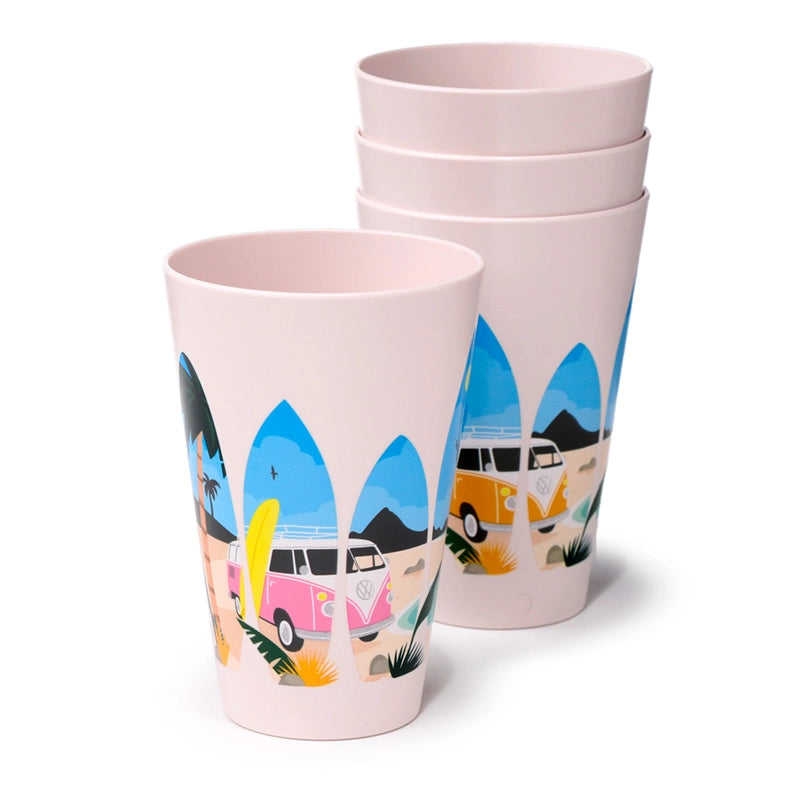 Lot de 4 gobelets (450 ml chacun) avec design Combi Surf VW T1
